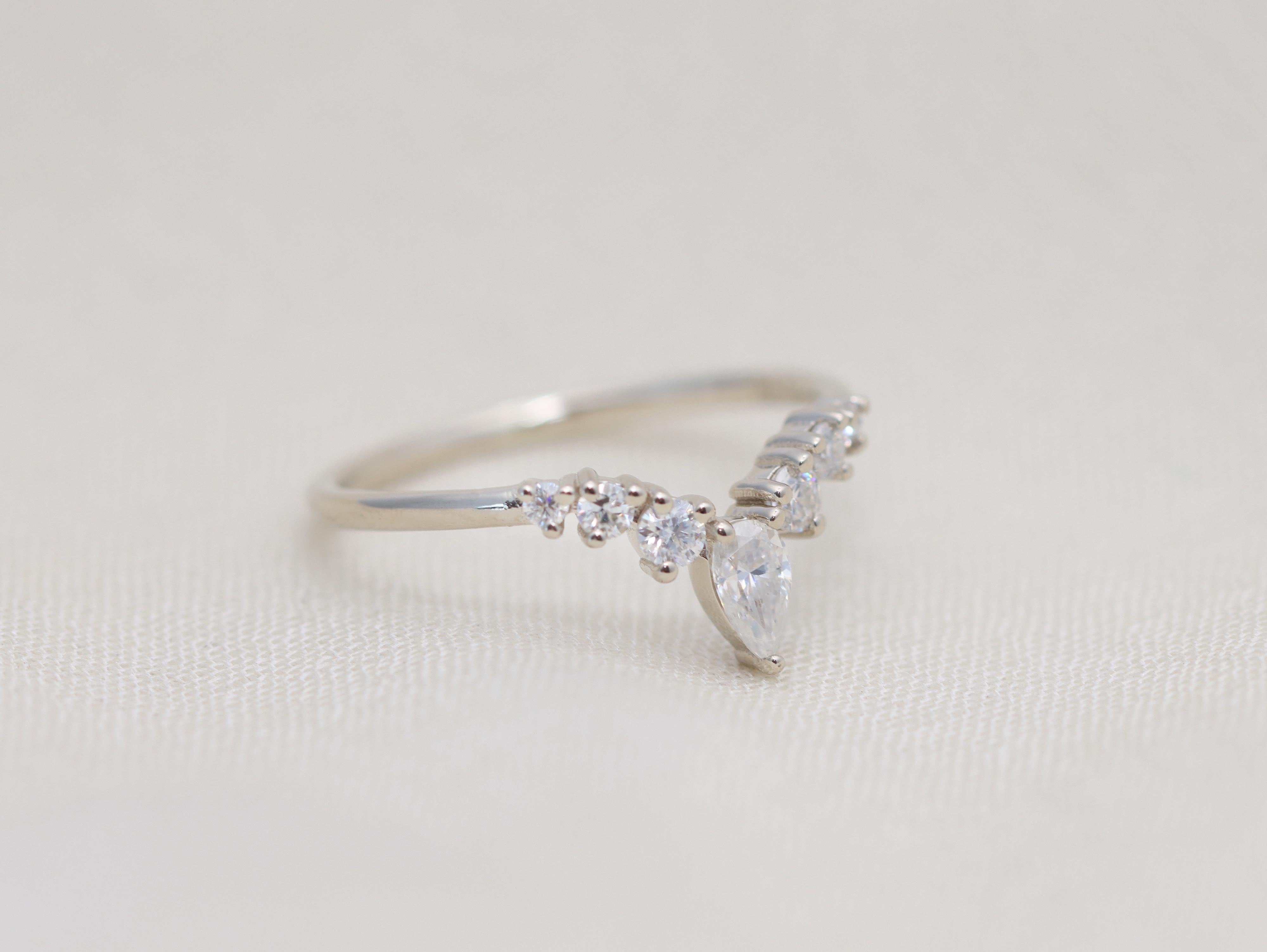 The curved design of Diadem Ring is ideal for stacking with other rings from my shop and as a unique wedding band.
