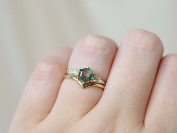 The Huntington Ring Bridal Set - Moss Agate