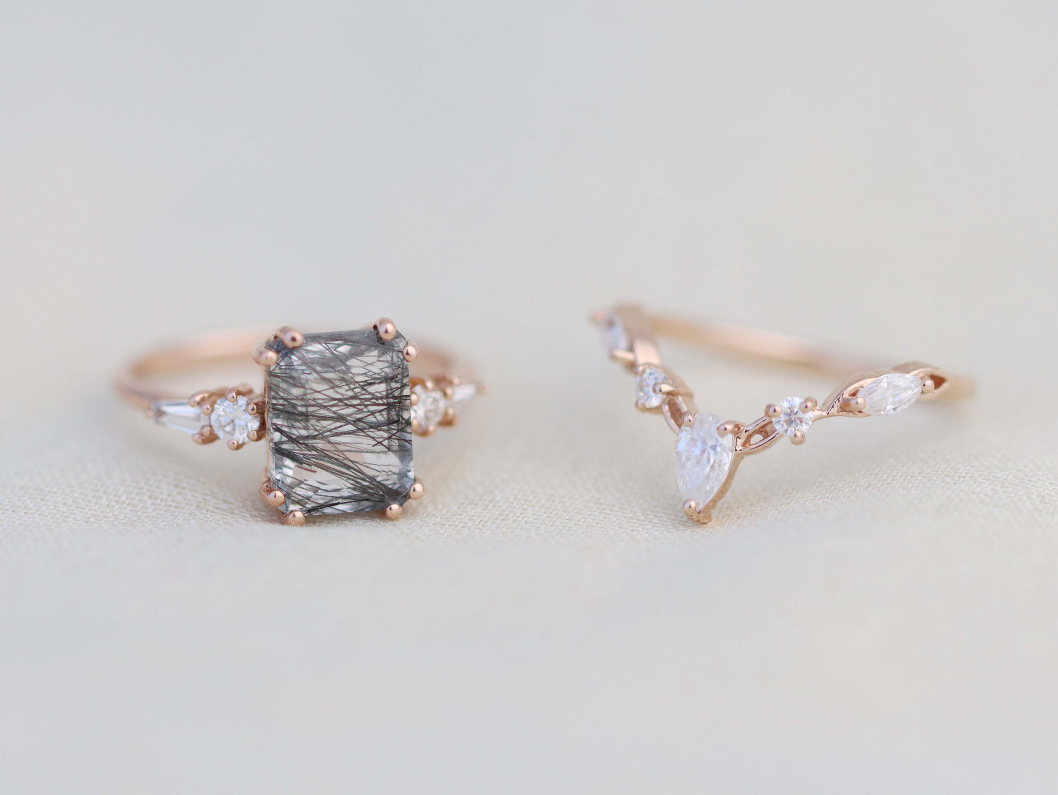 Neptune and Arwen Bridal Set - Tourmalinated Quartz