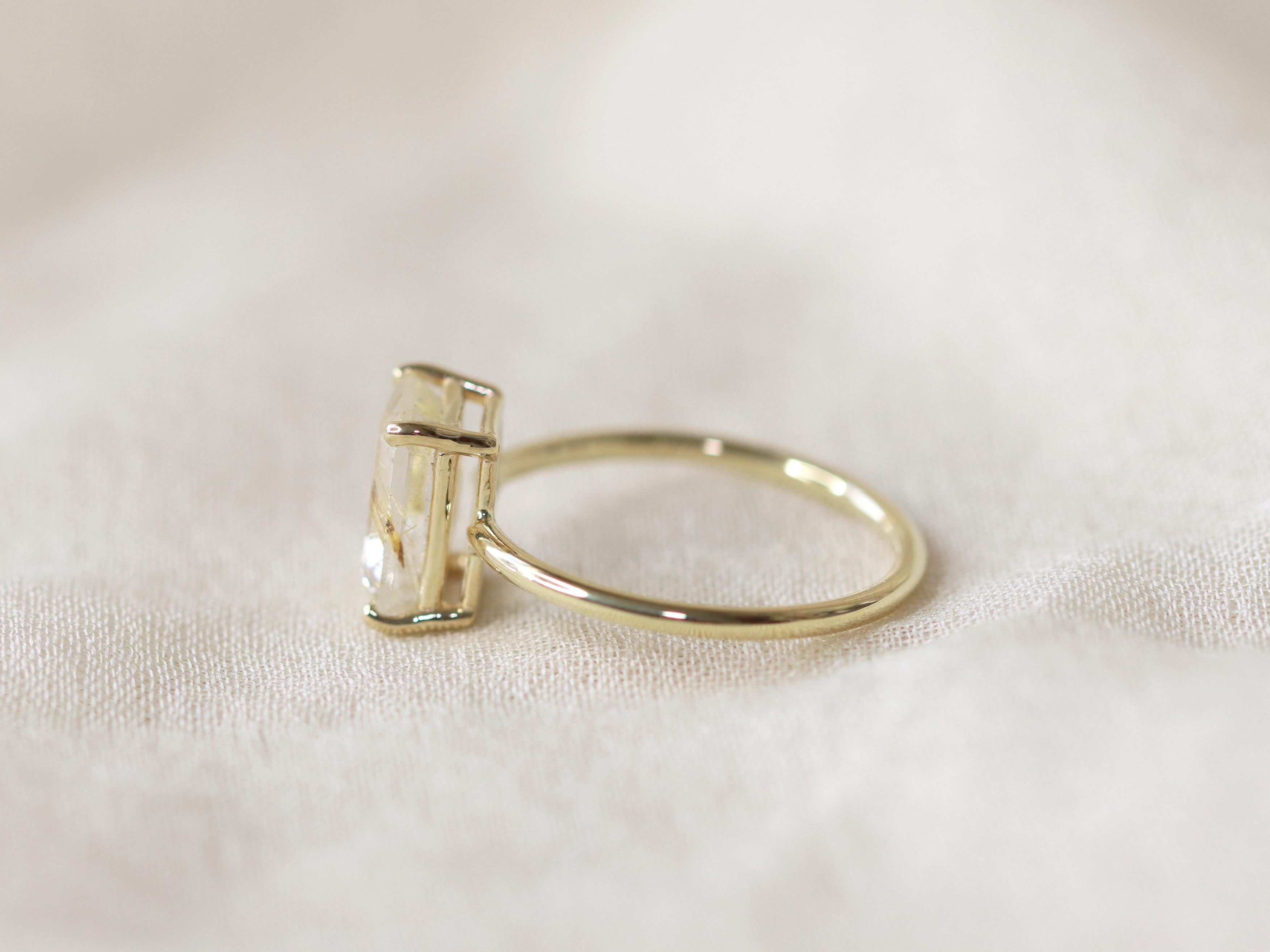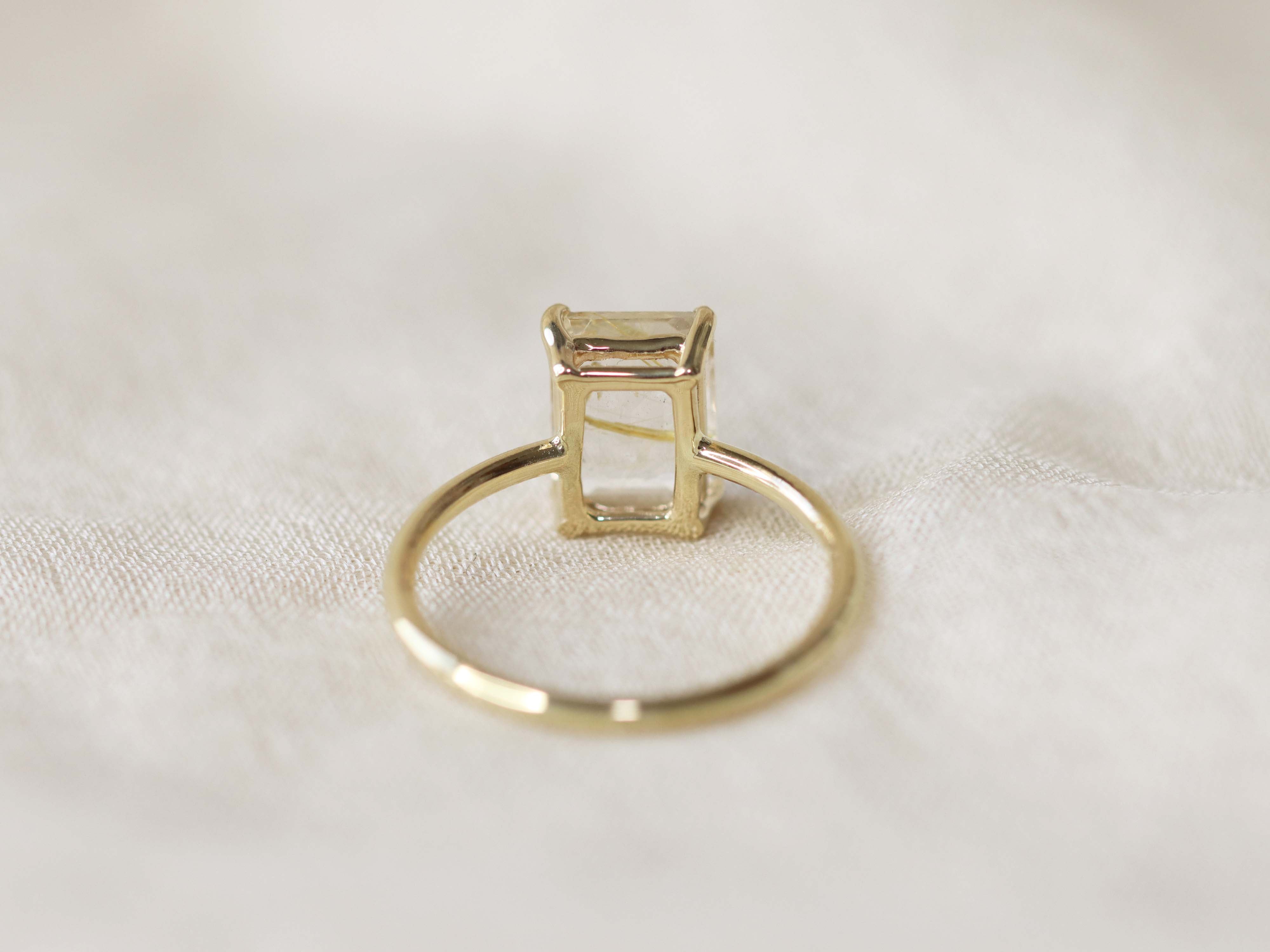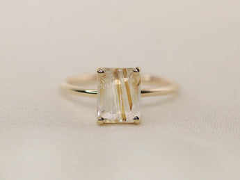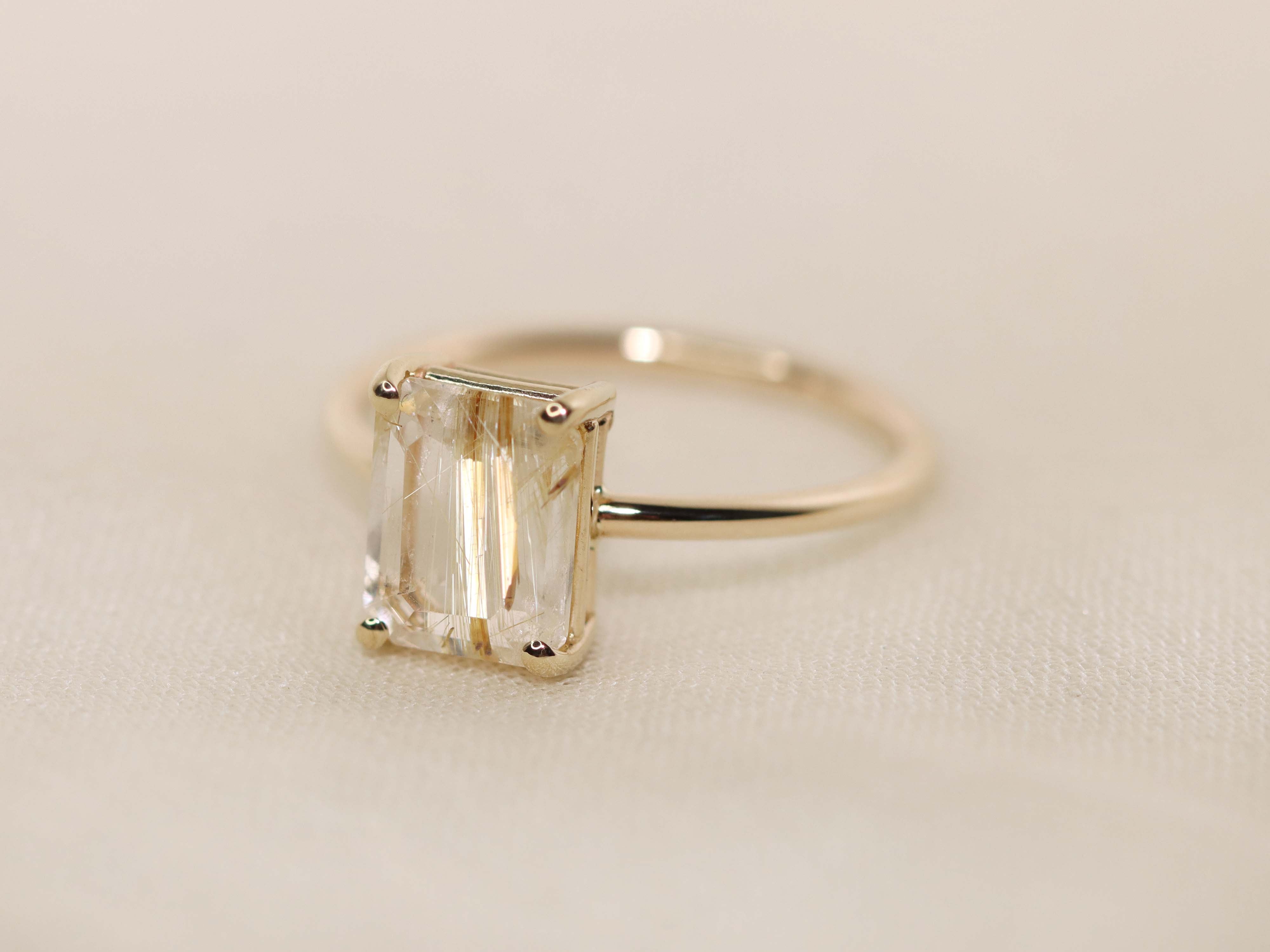 Golden Rutilated Quartz Solitaire Ring - 9x7 Emerald
