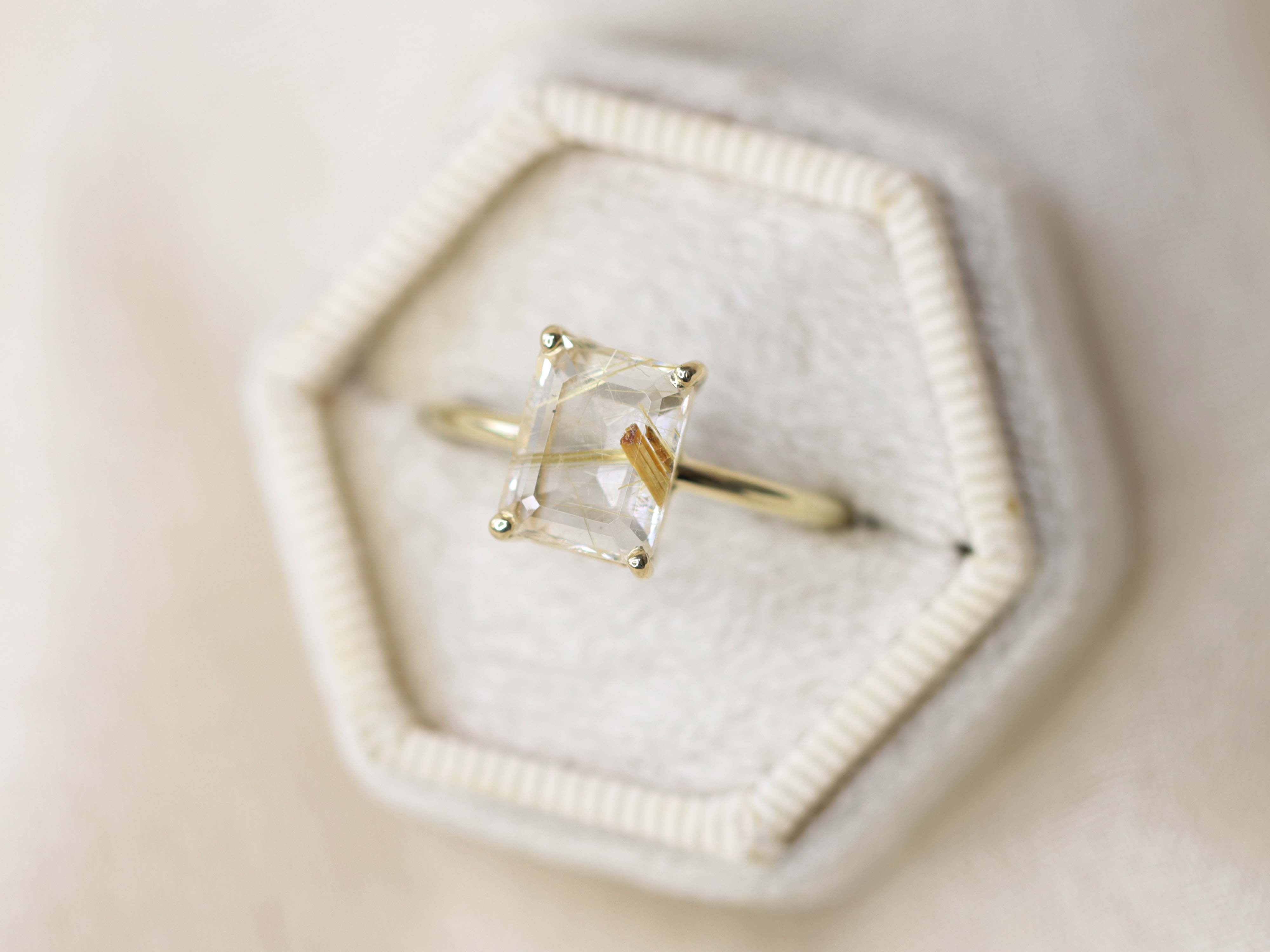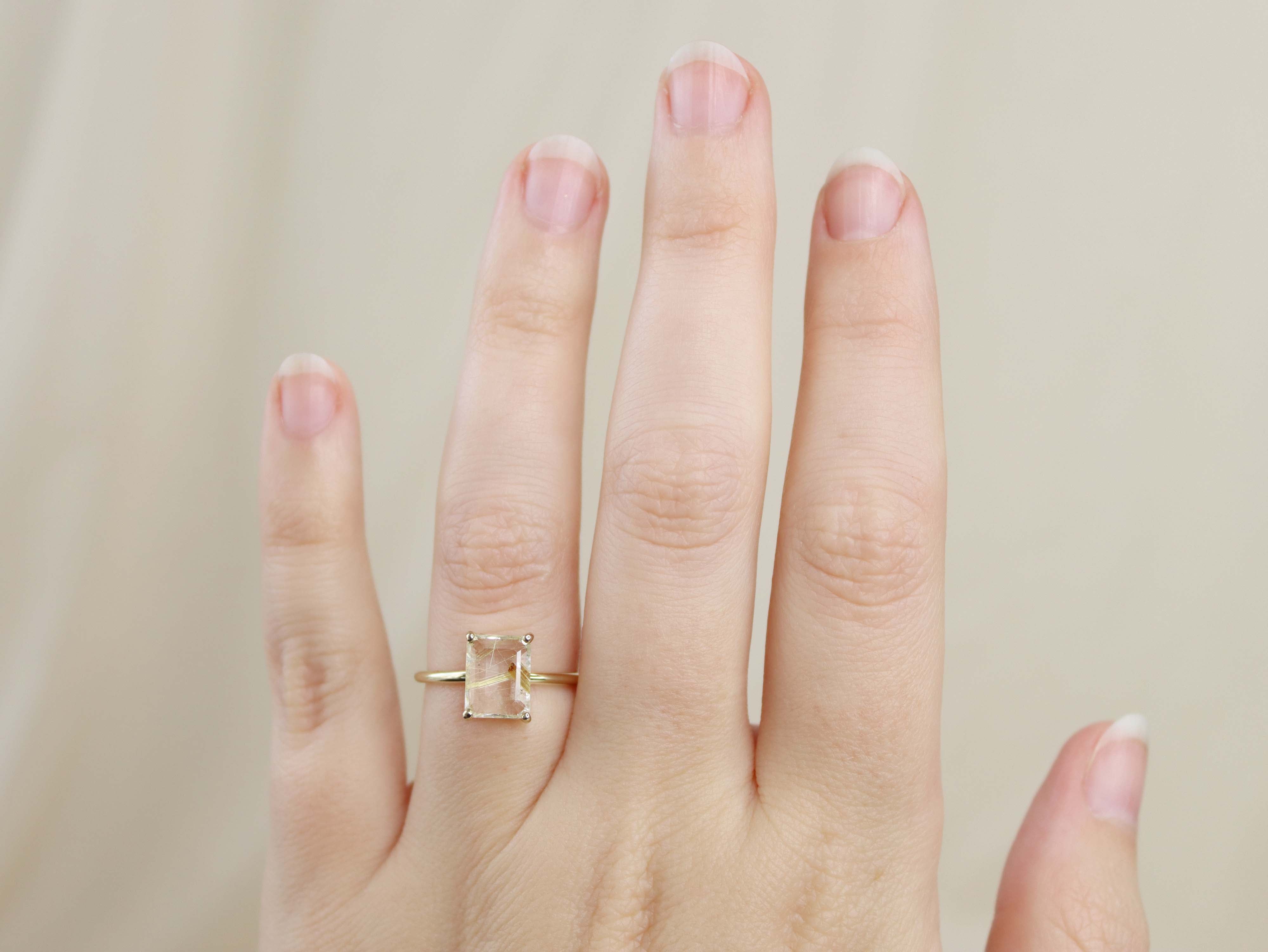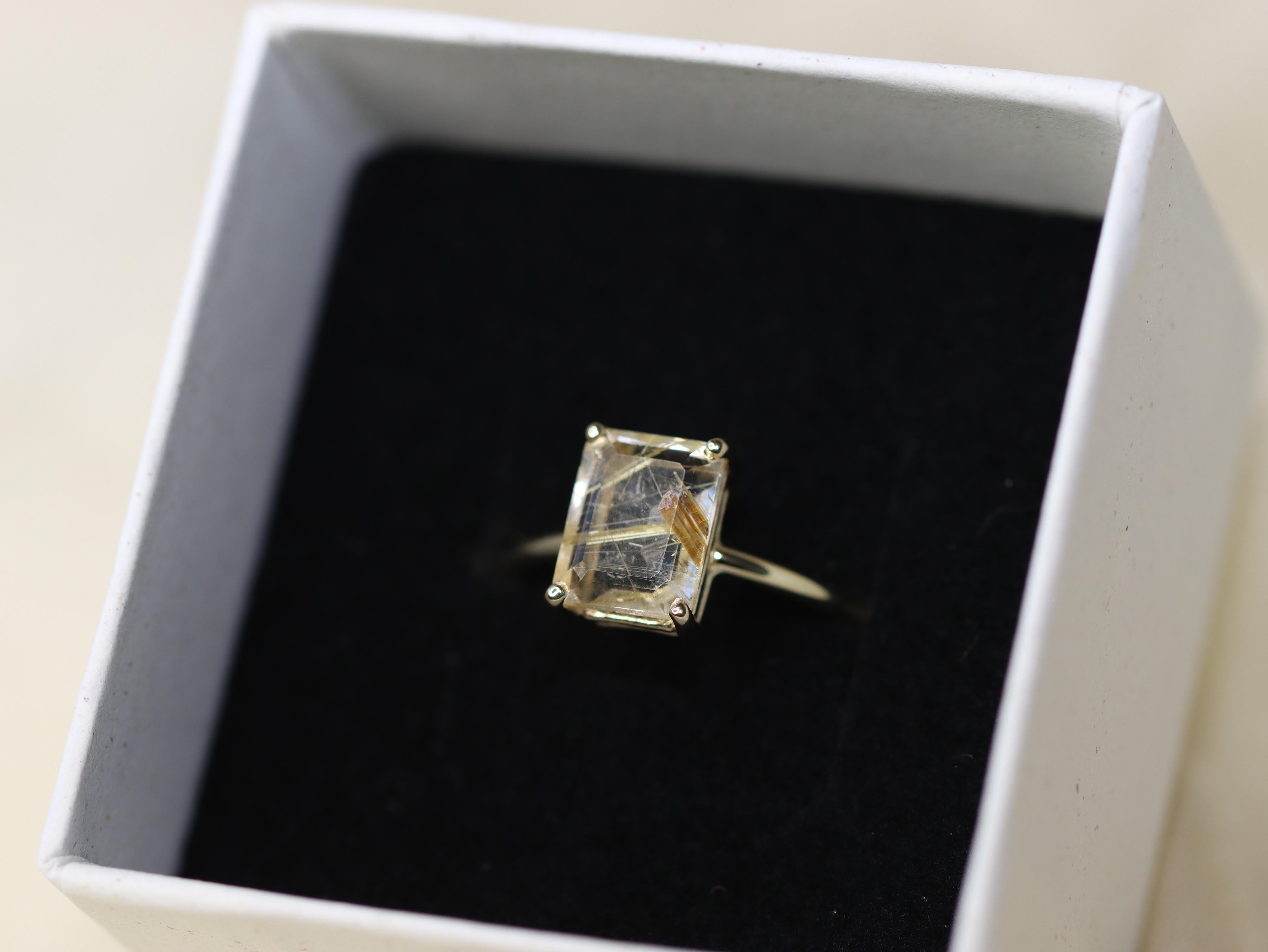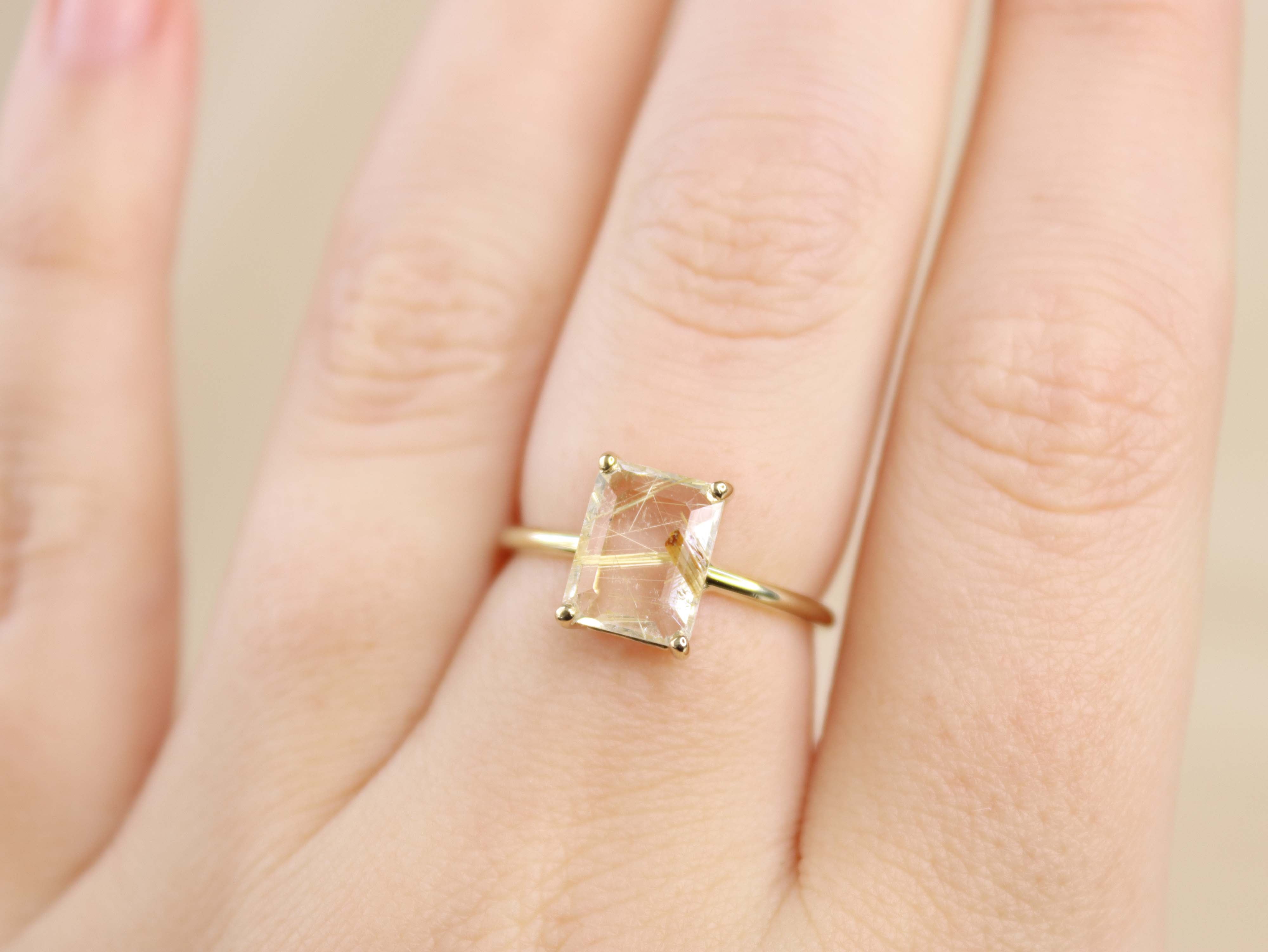 Golden Rutilated Quartz Solitaire Ring - 9x7 Emerald