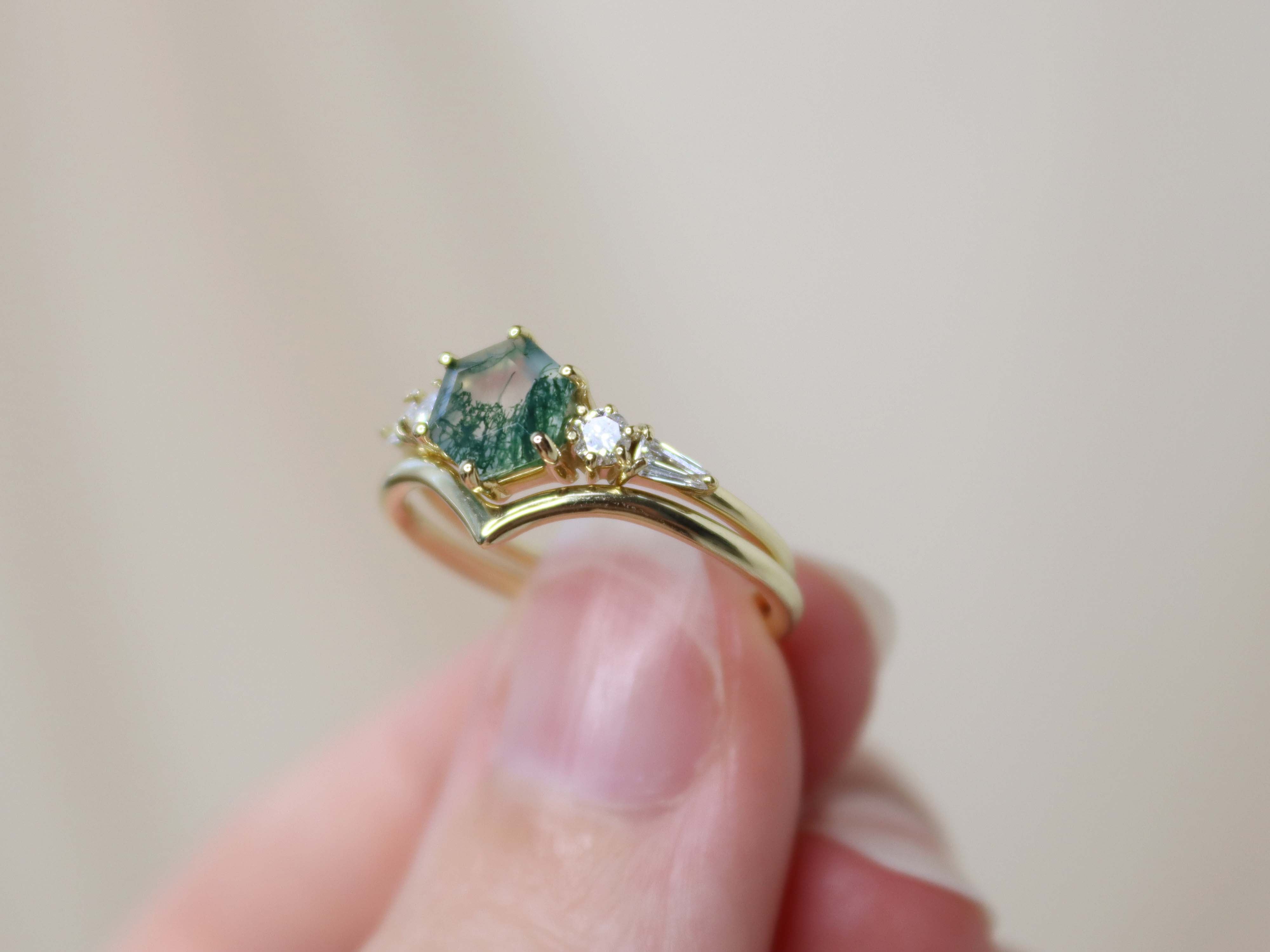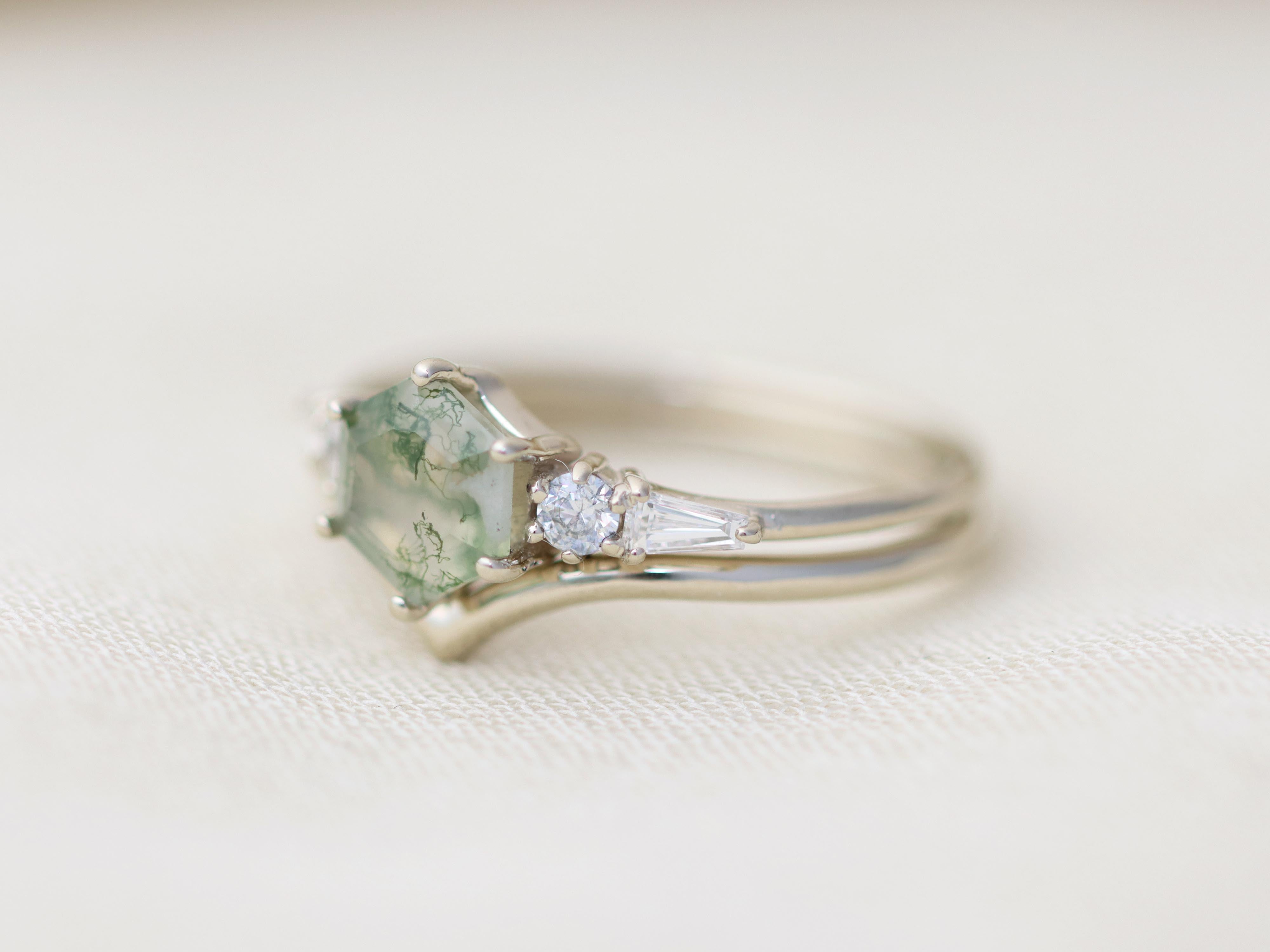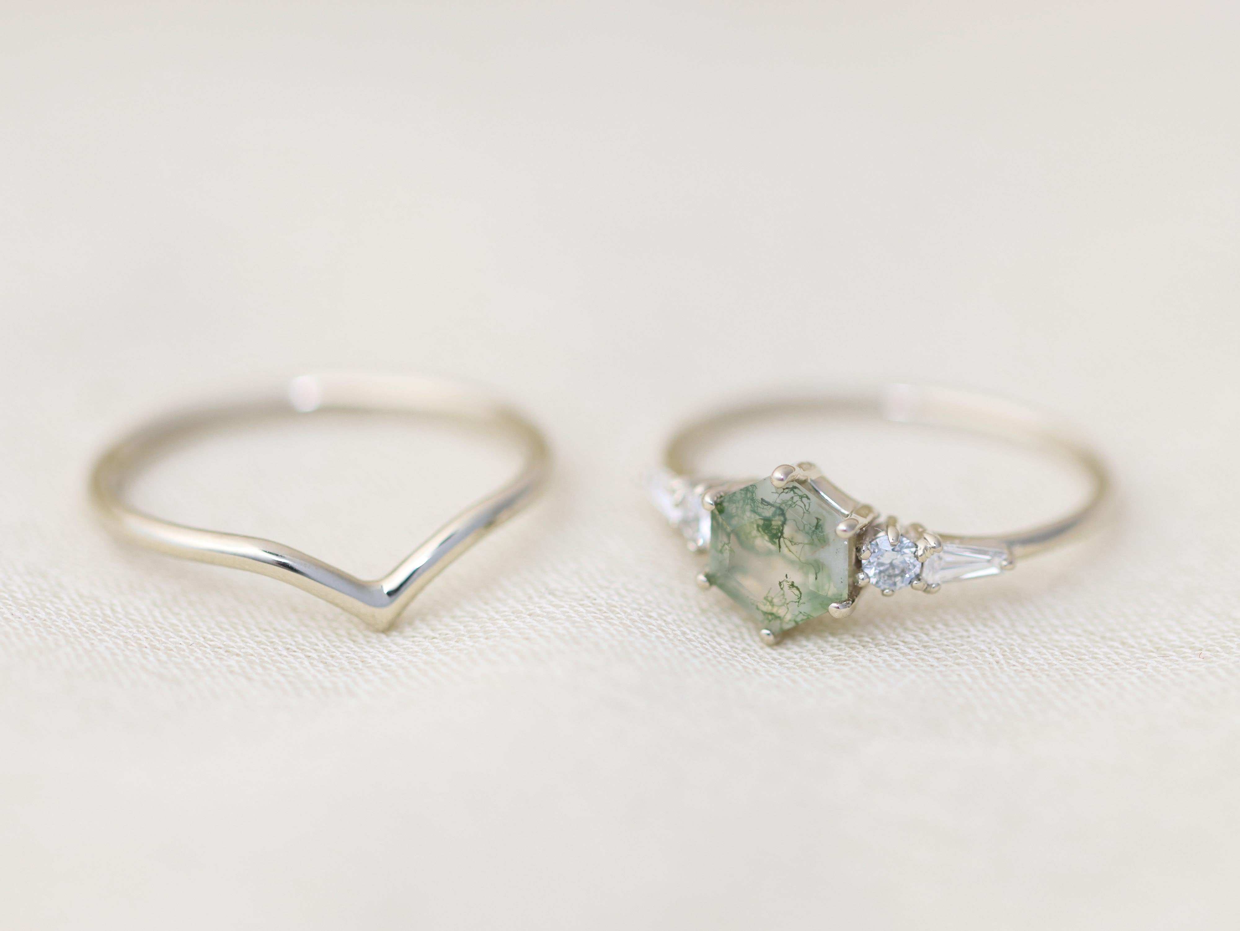 This bridal set includes the Huntington ring and a chevron ring that fits perfectly flush to its profile. Each ring is also available separately for sale in my shop.