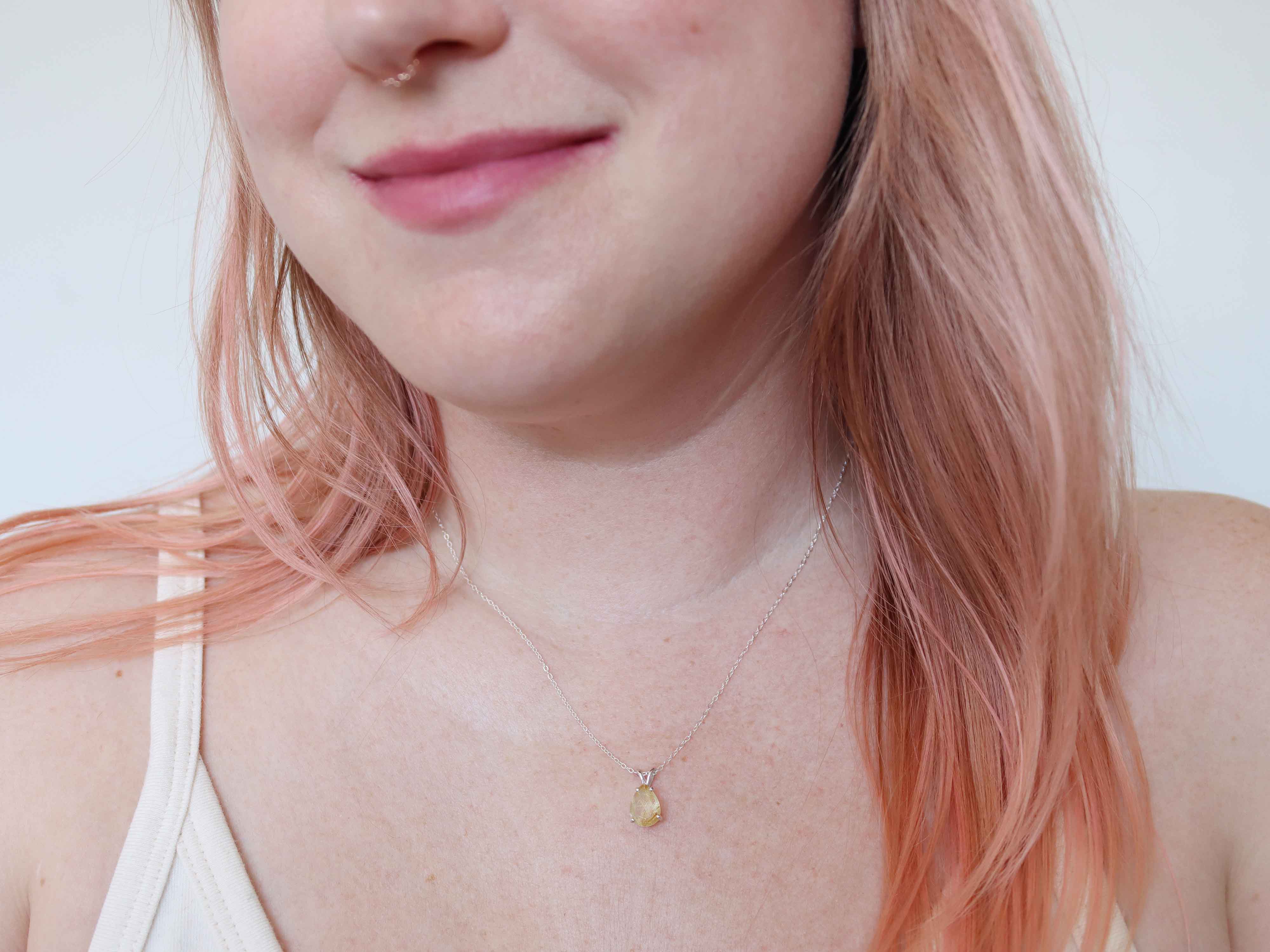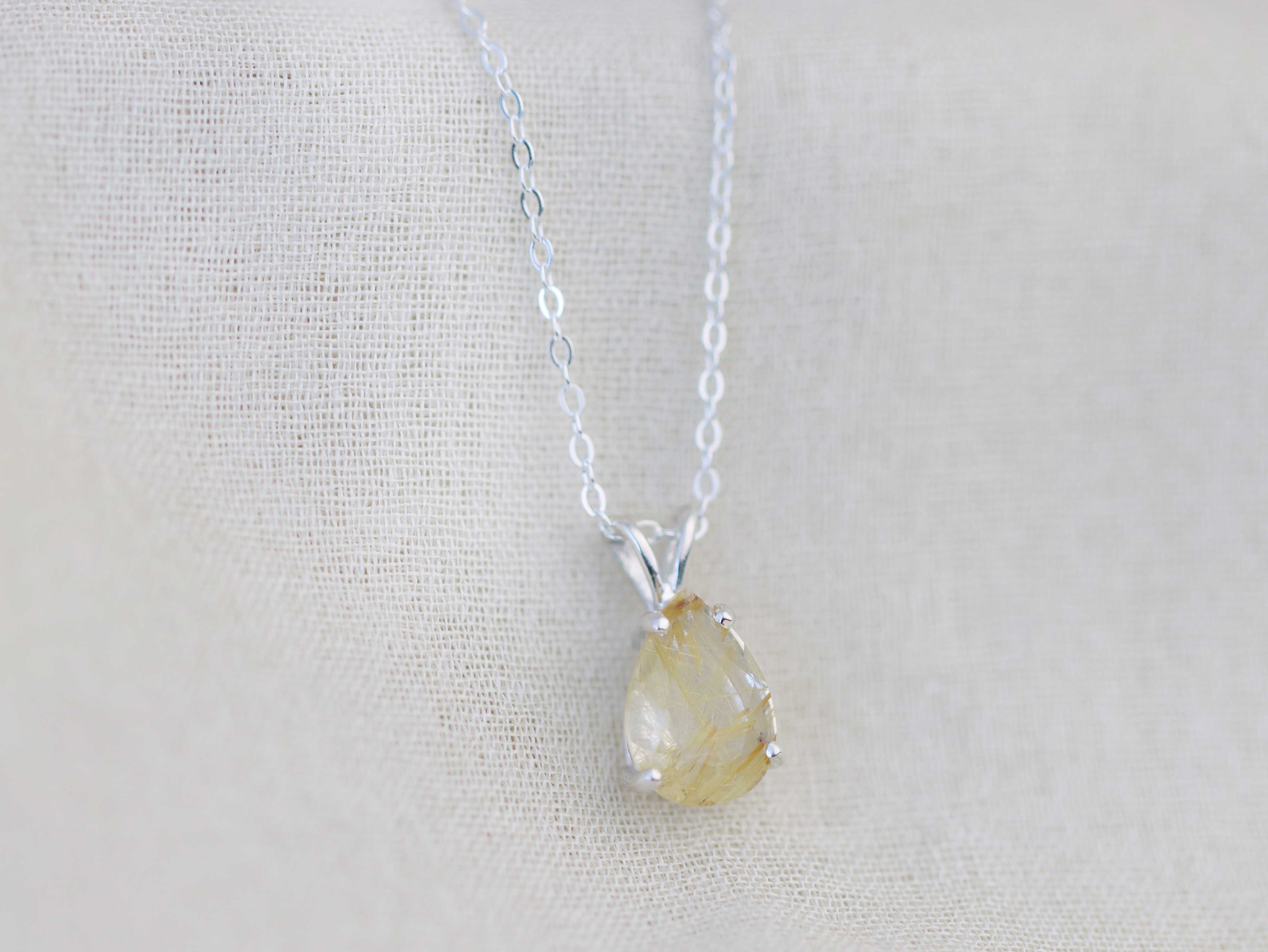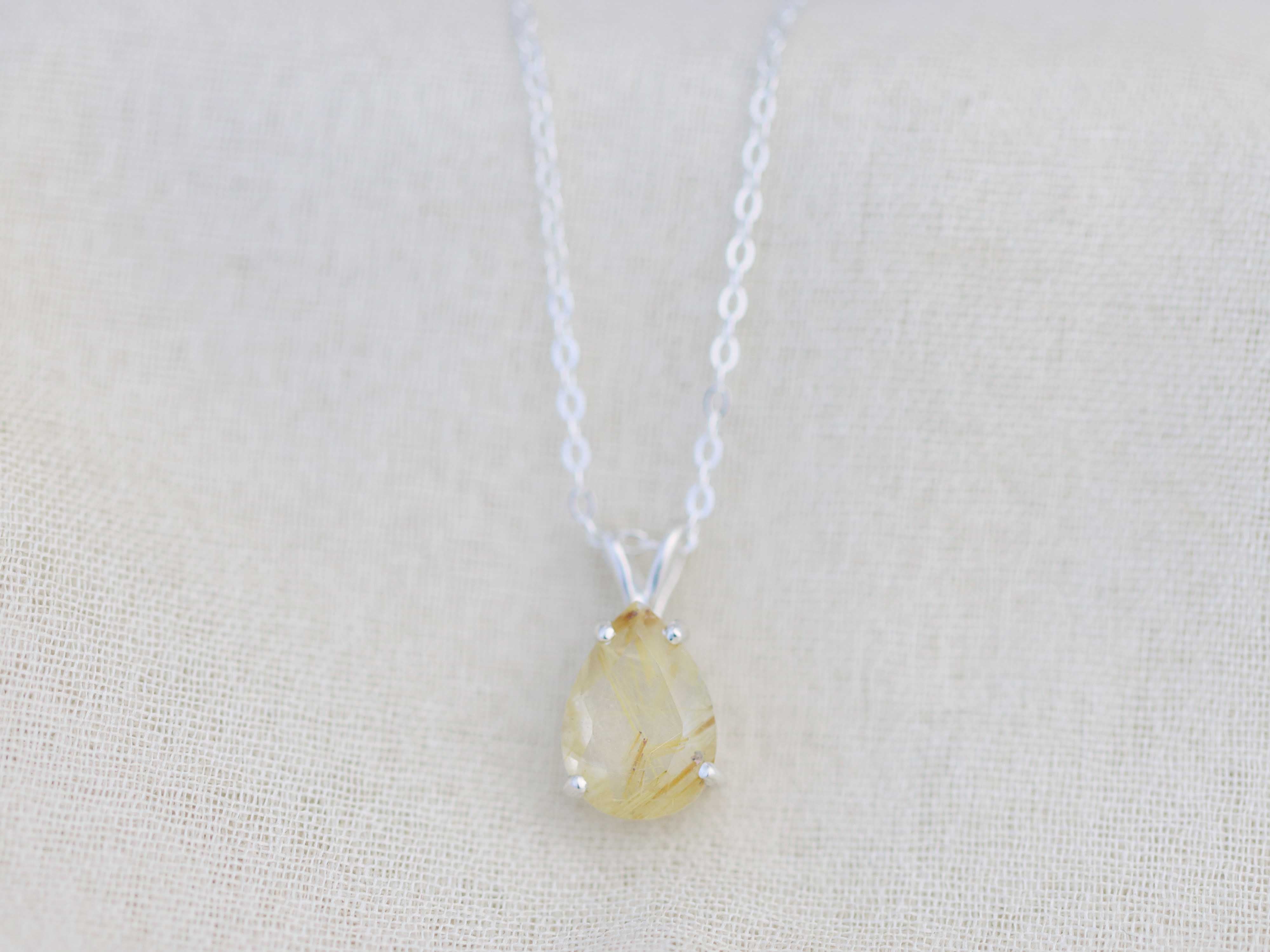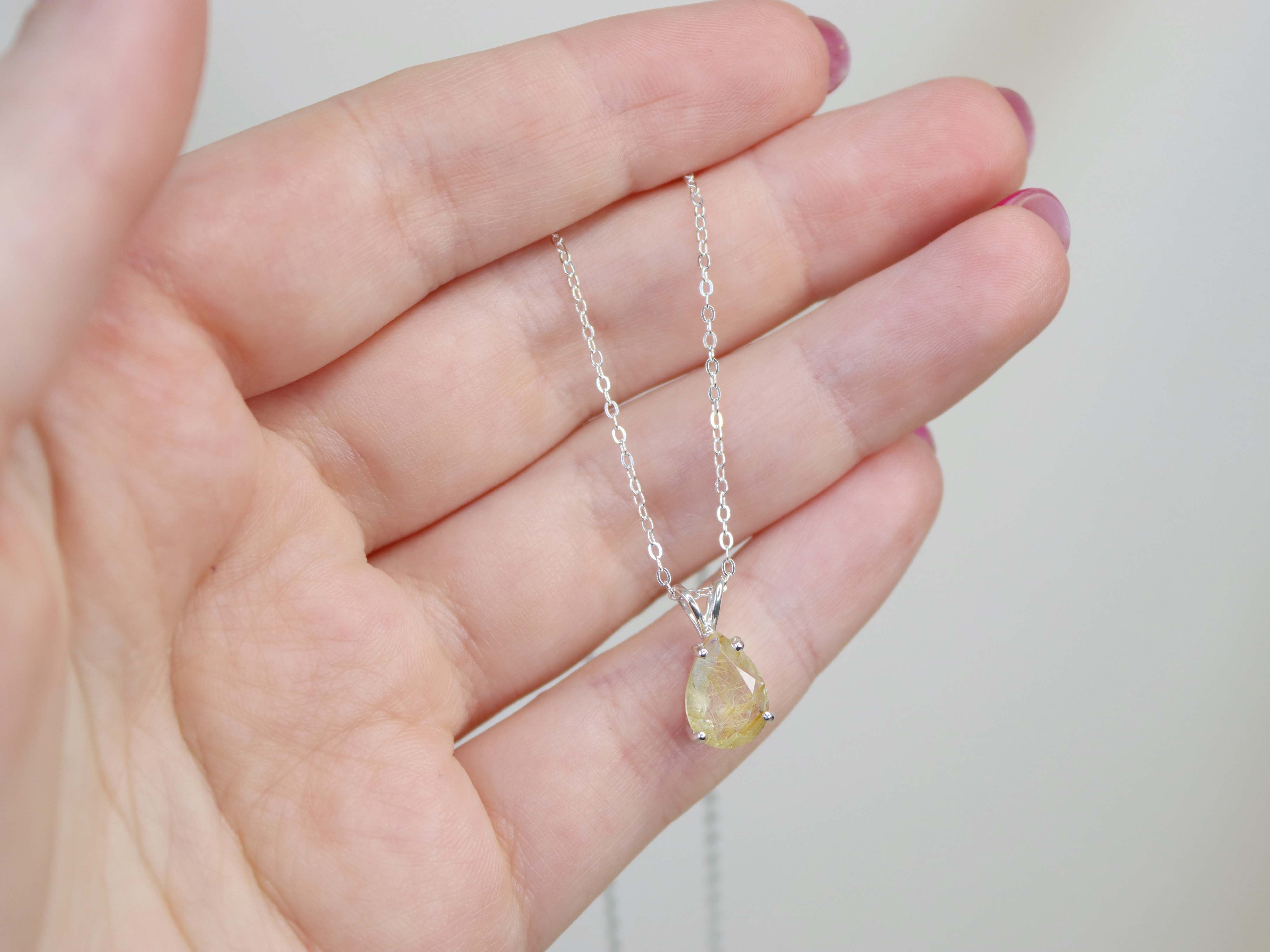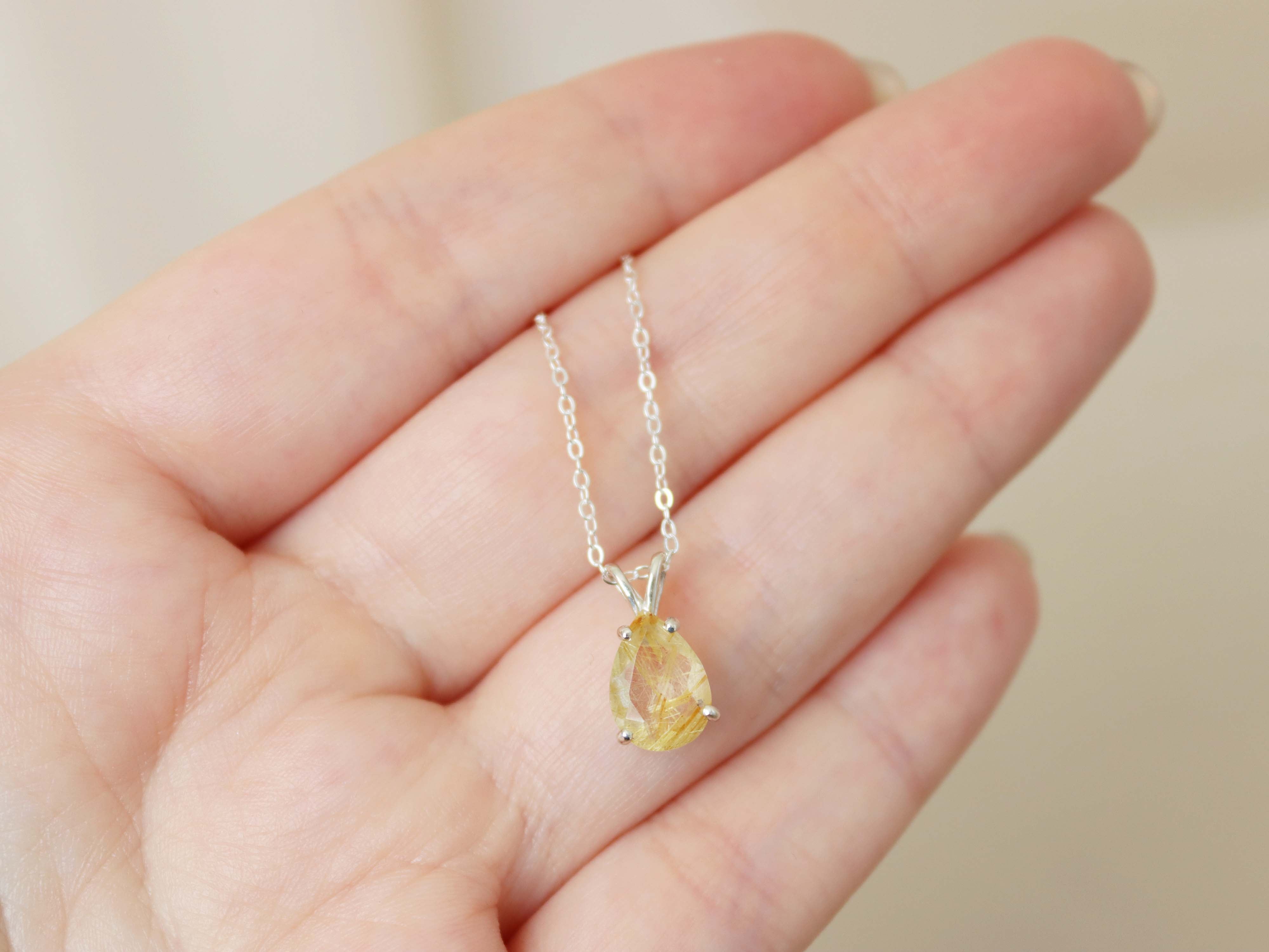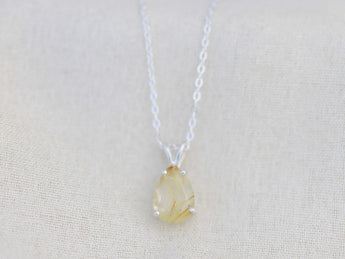 Golden Rutilated Quartz Pendant Necklace - 10x7 Pear