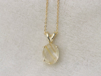 Golden Rutilated Quartz Pendant Necklace - 10x8 Oval
