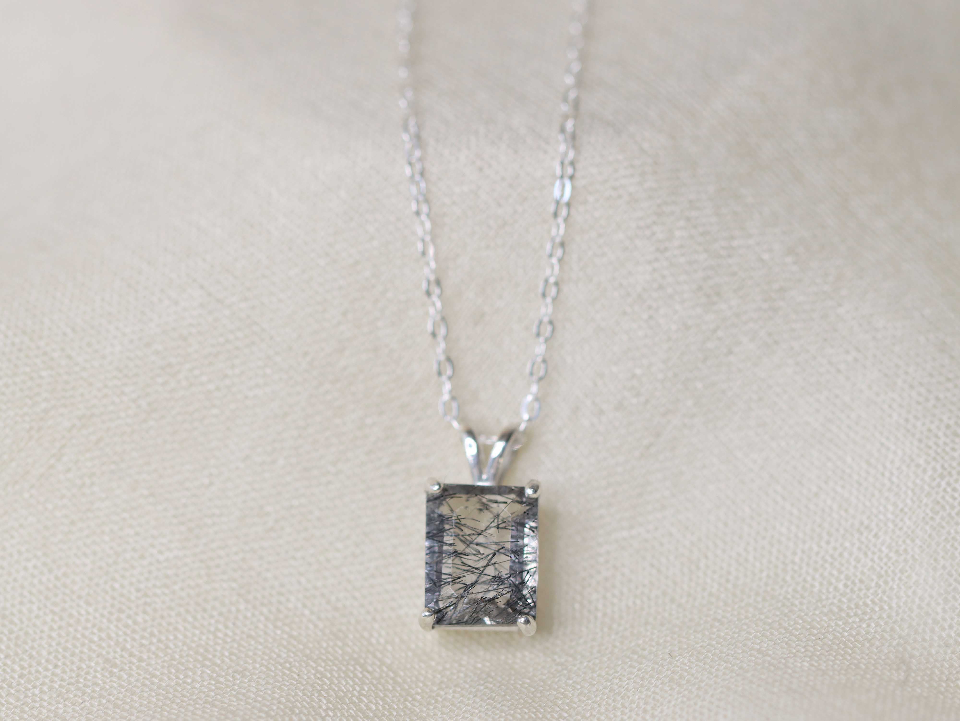 Tourmalinated Quartz Pendant Necklace - 9x7 Emerald