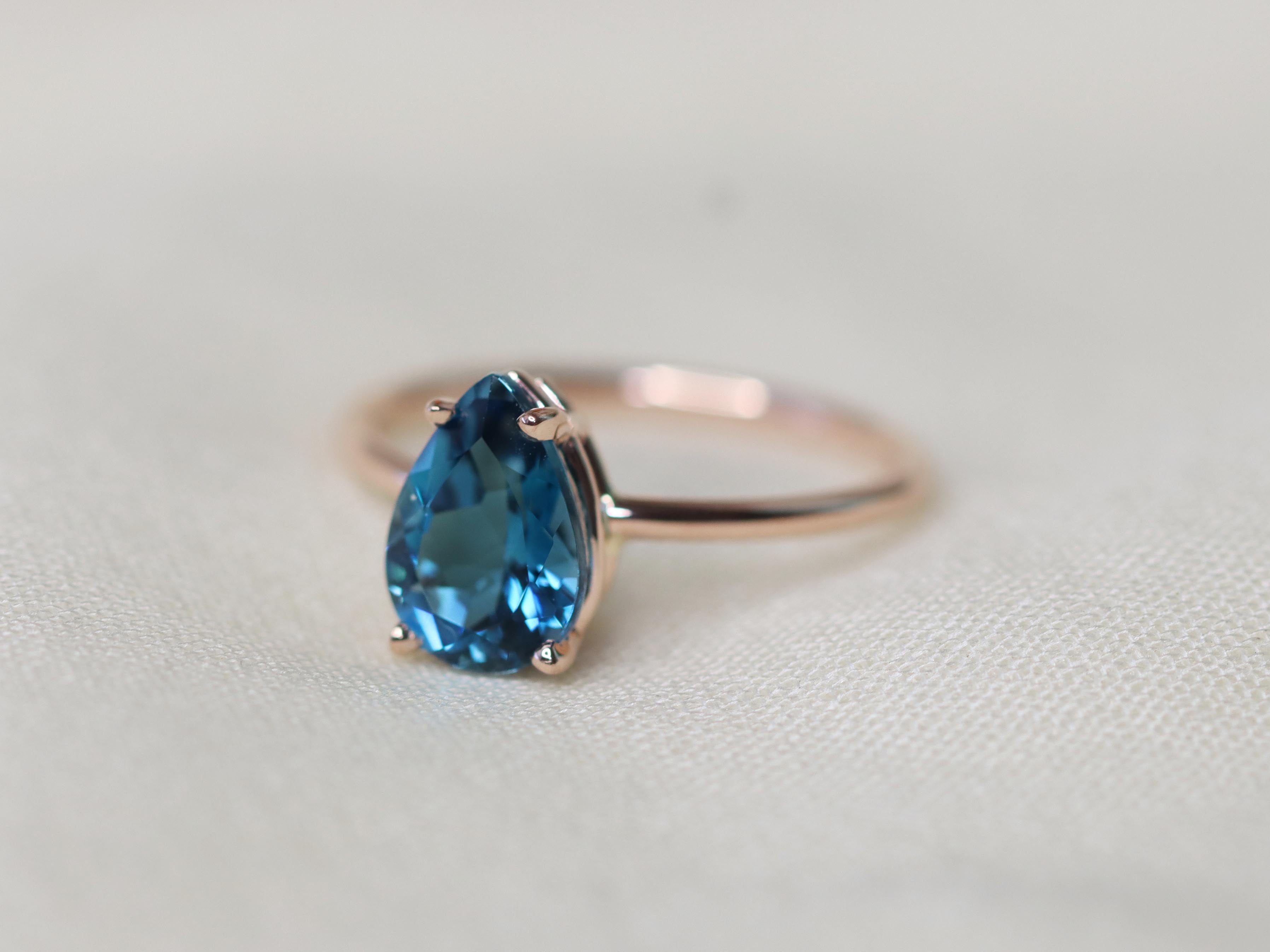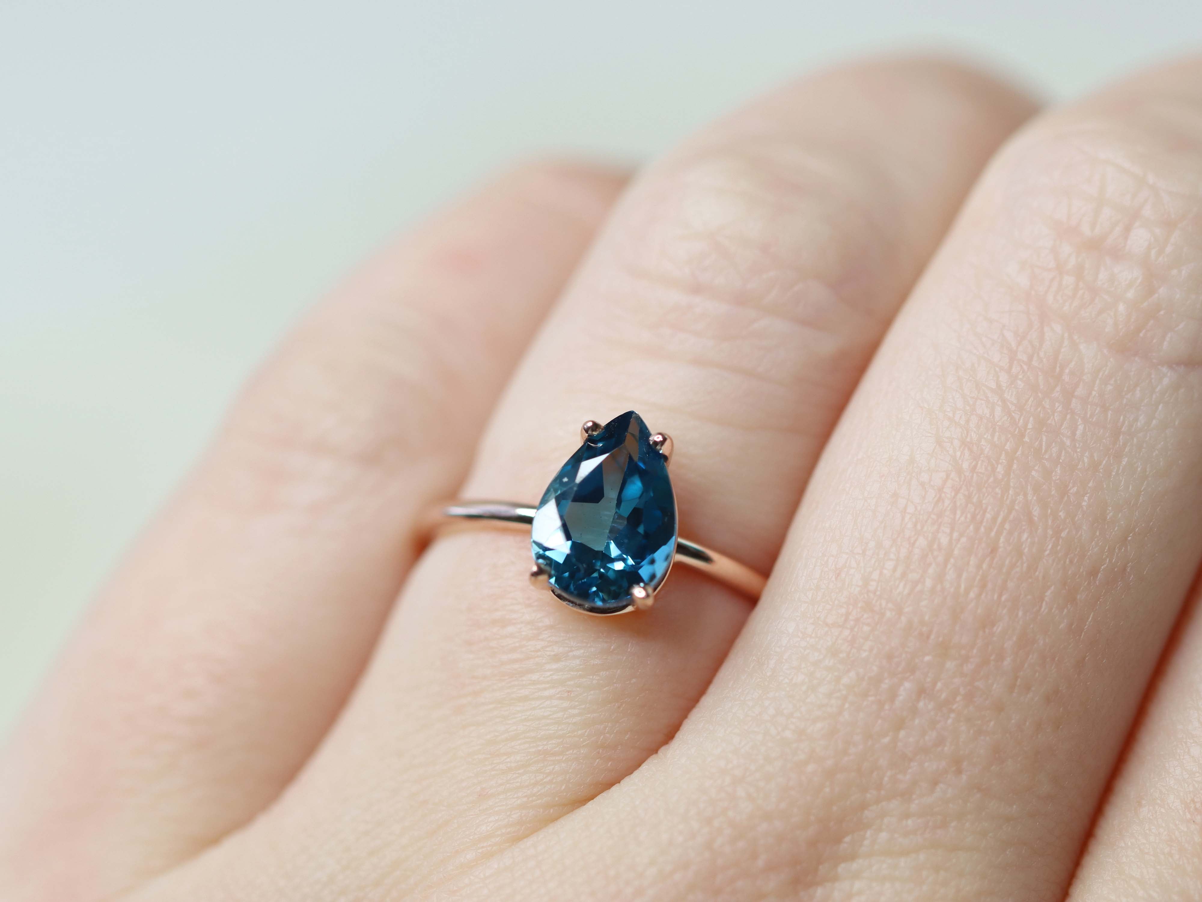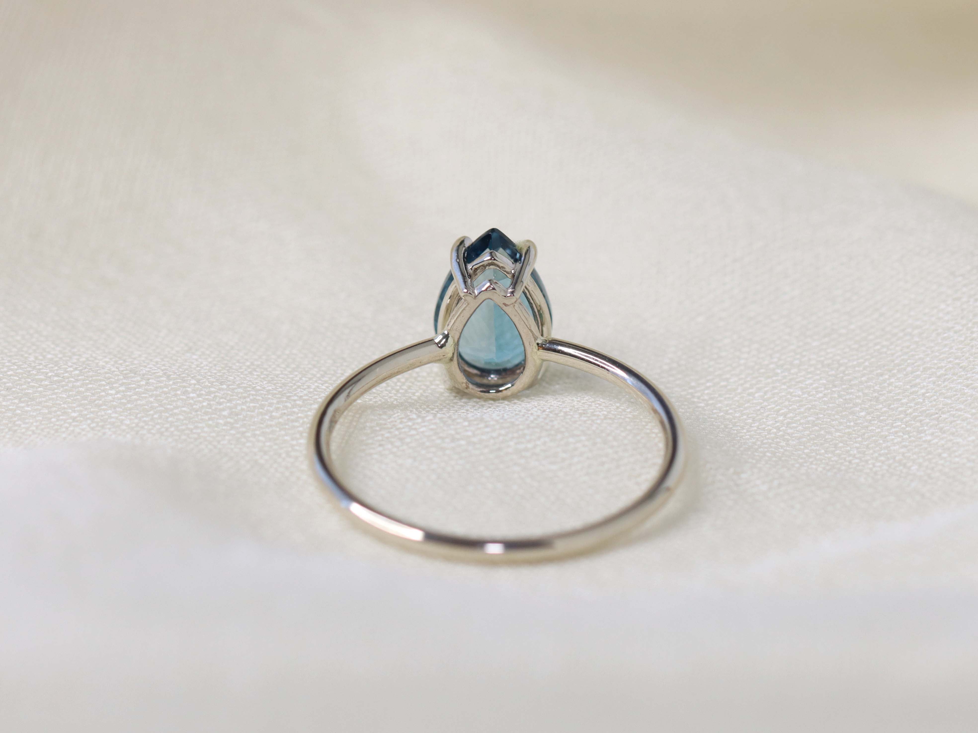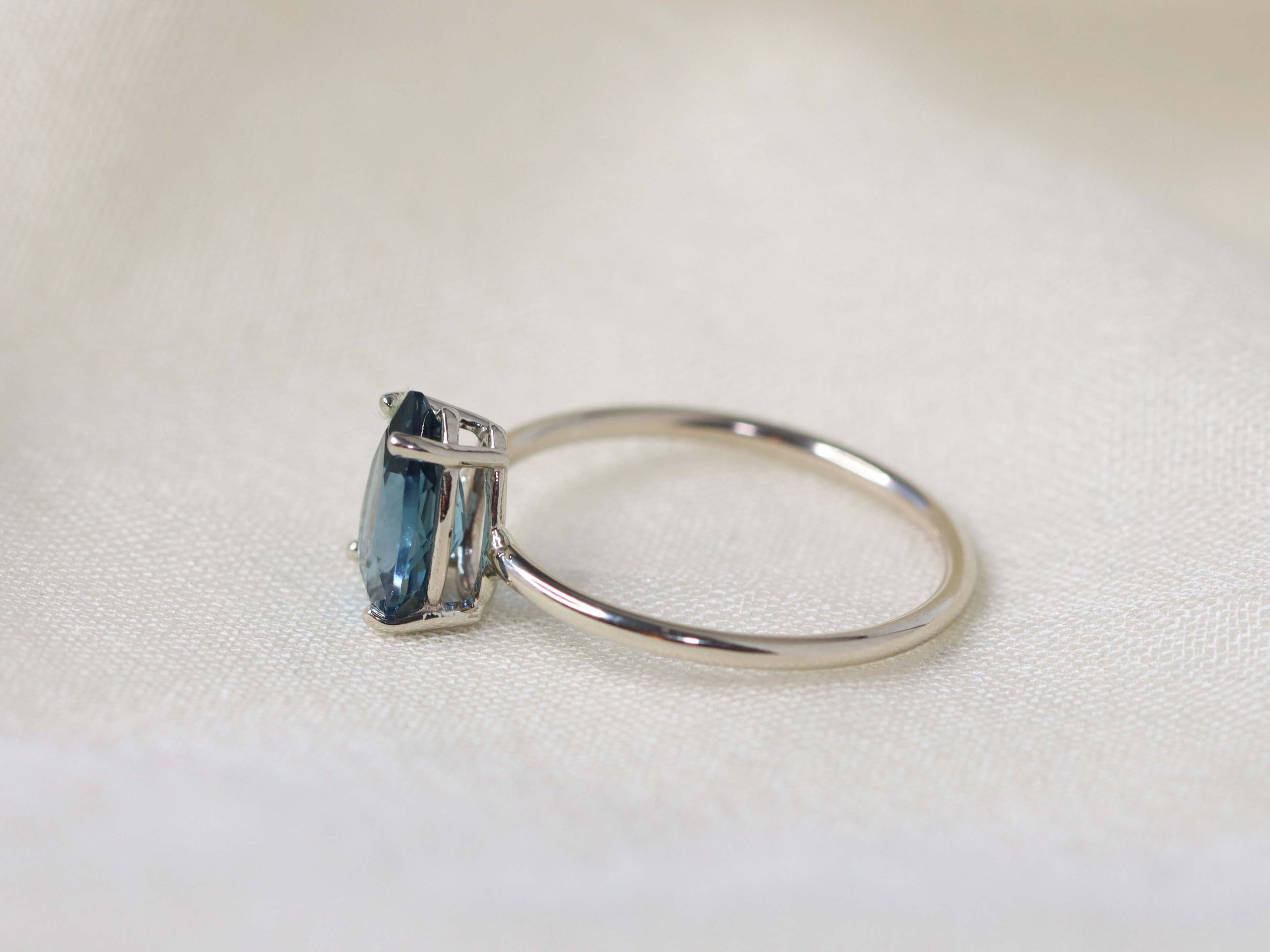 London blue topaz is a unique and deeply enchanting stone, one that completely mesmerizes me. This inky blue color is reminiscent of the mysterious deep ocean, and the facets on this ring glimmer like breaking waves in the sun. Featured in a timeless setting, this gemstone is a beautiful gift to yourself or others.