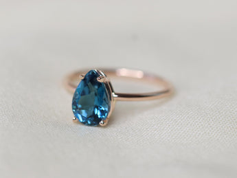 London Blue Topaz Solitaire Ring - 10x7 Pear