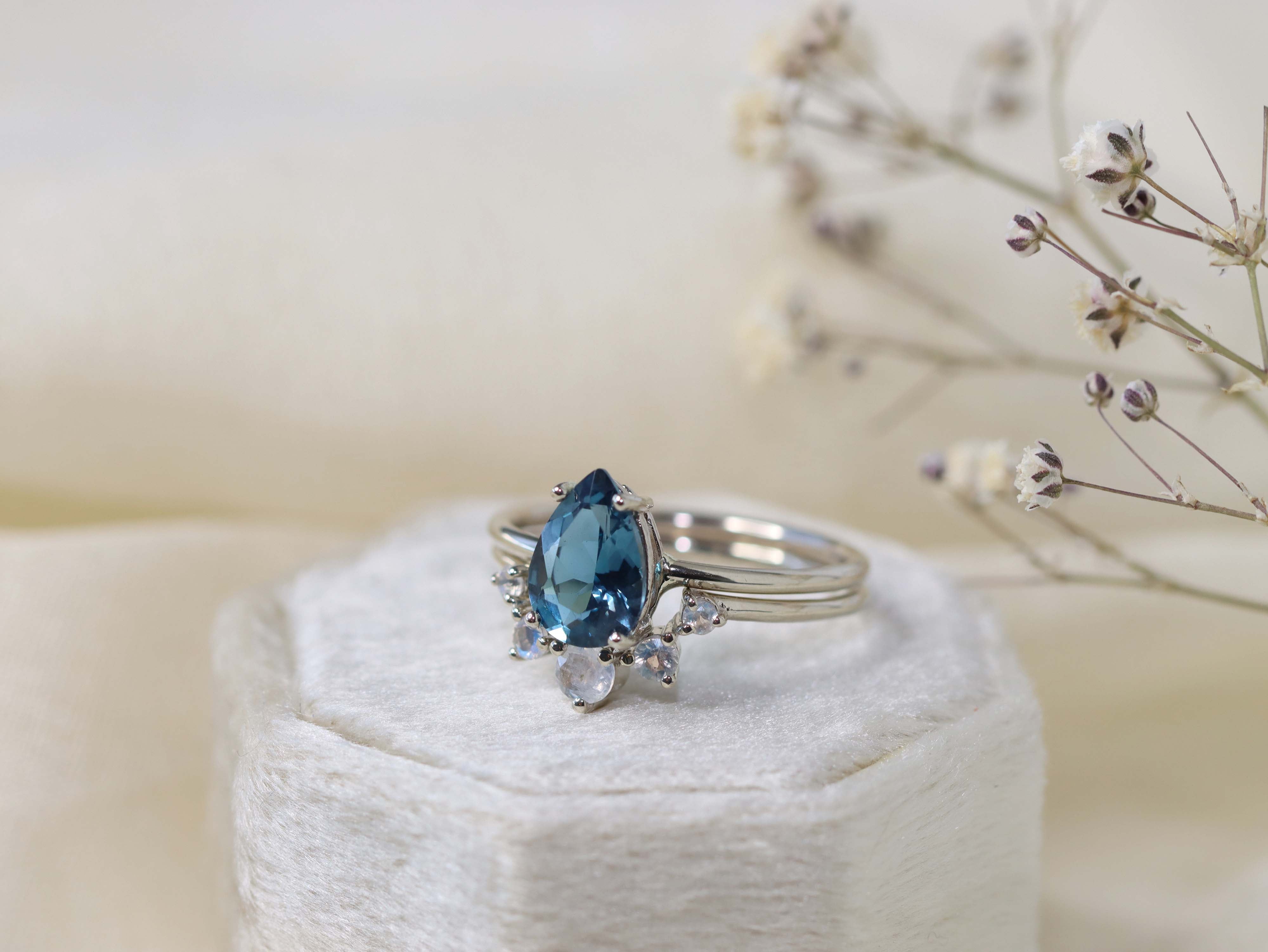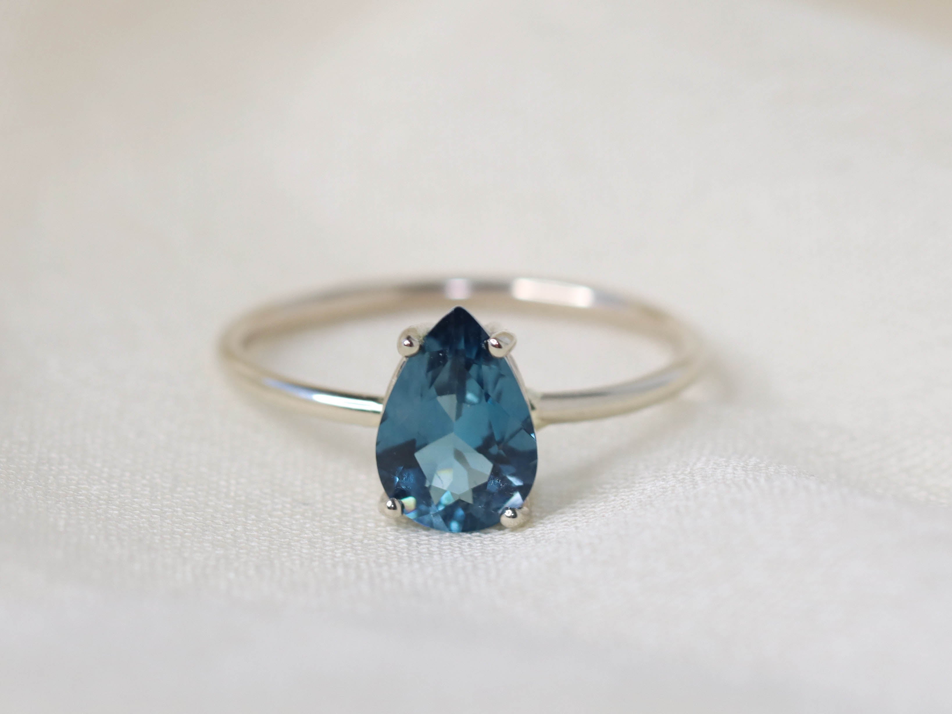 - 10mm x 7mm faceted pear cut London blue topaz