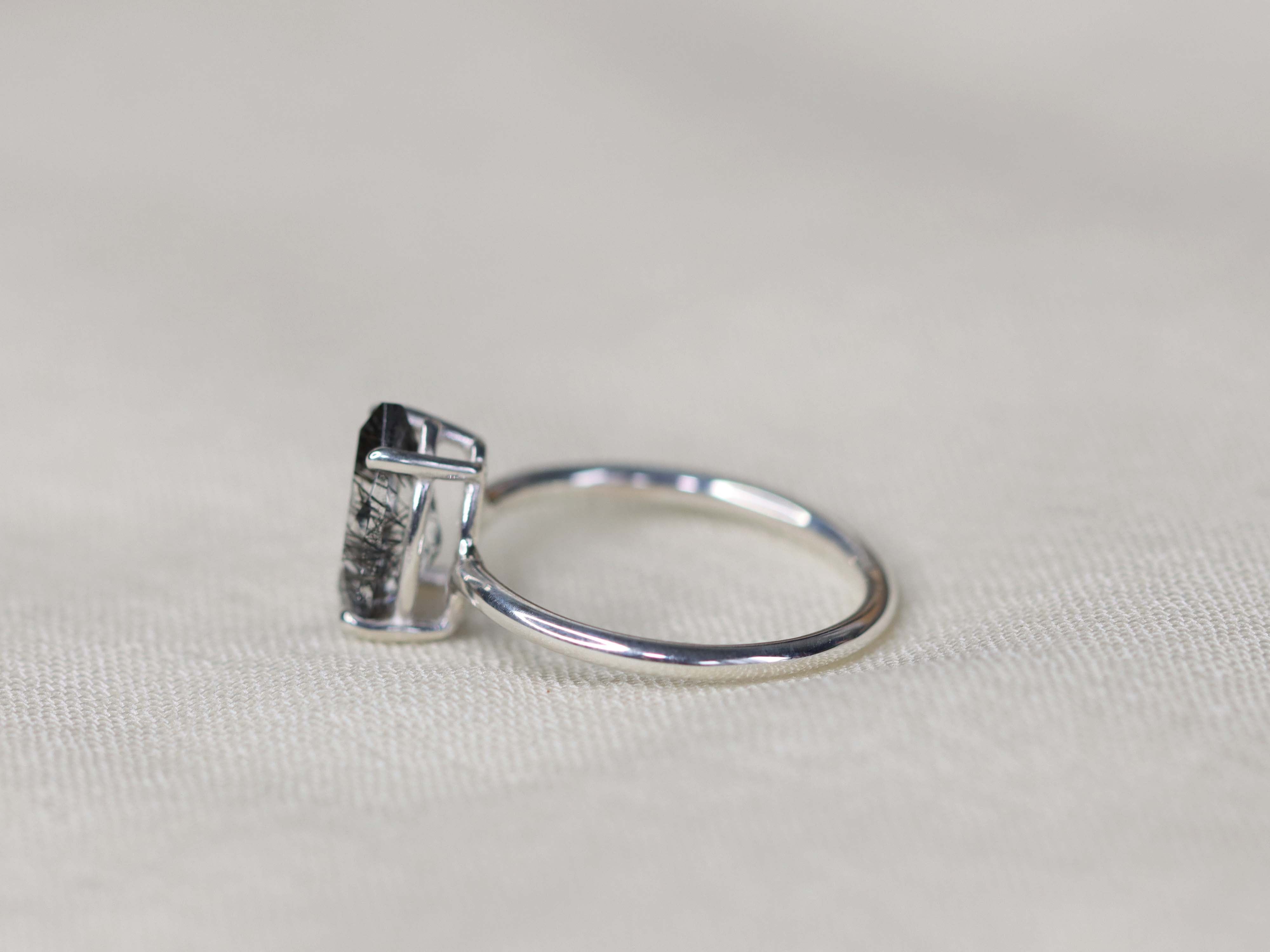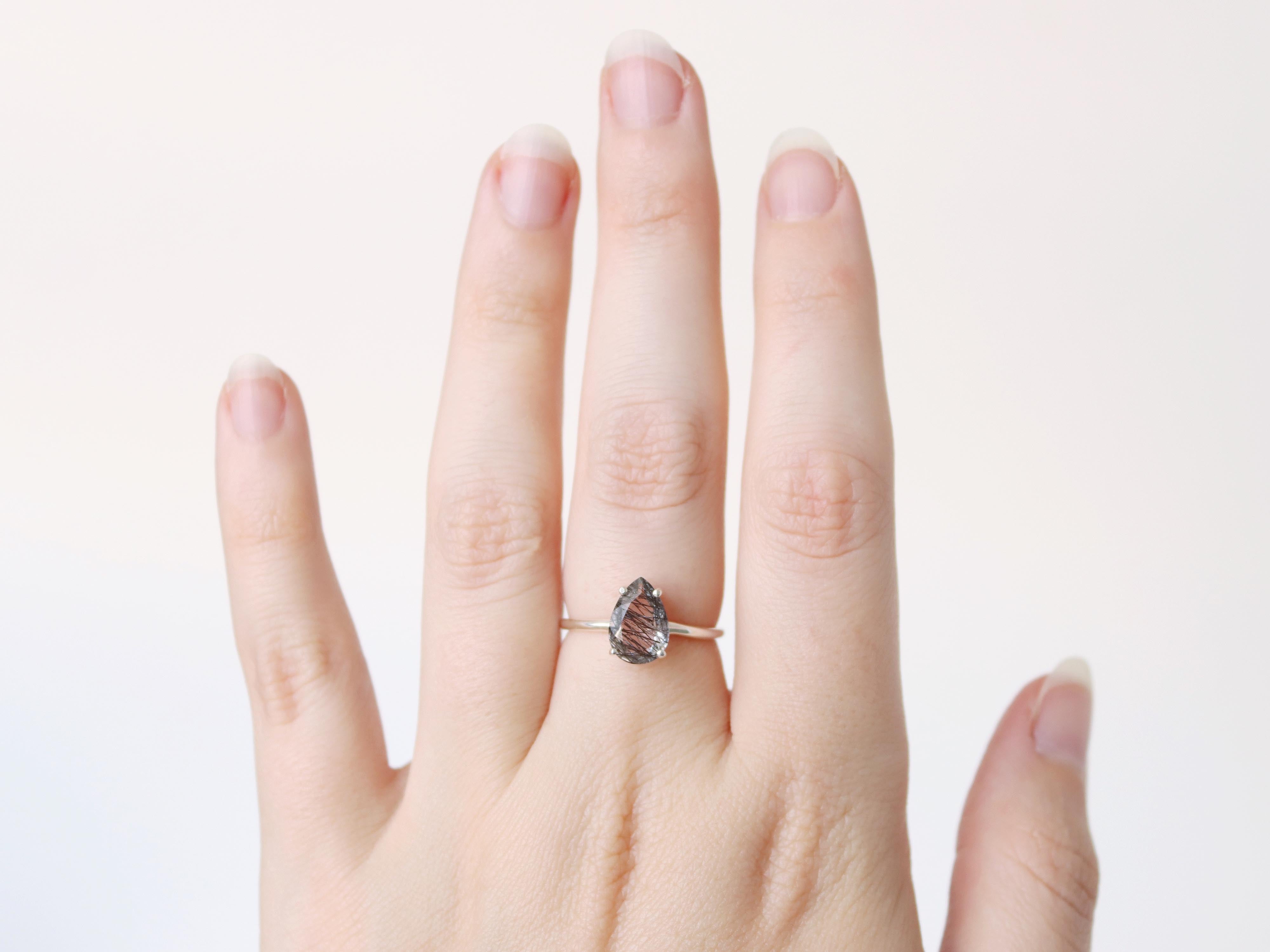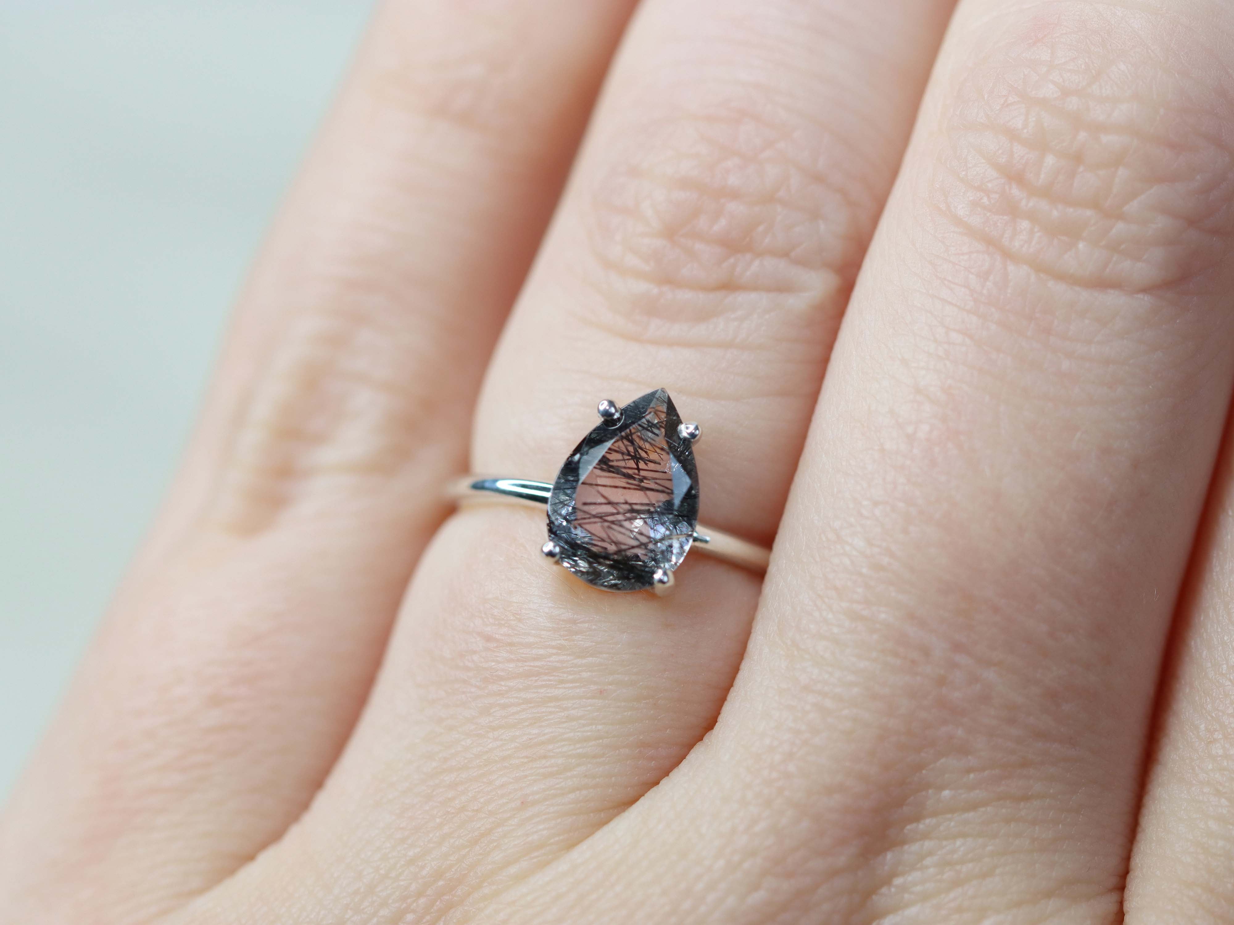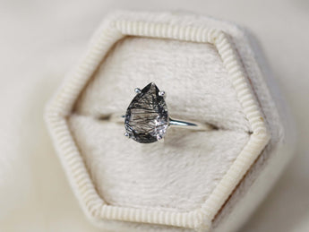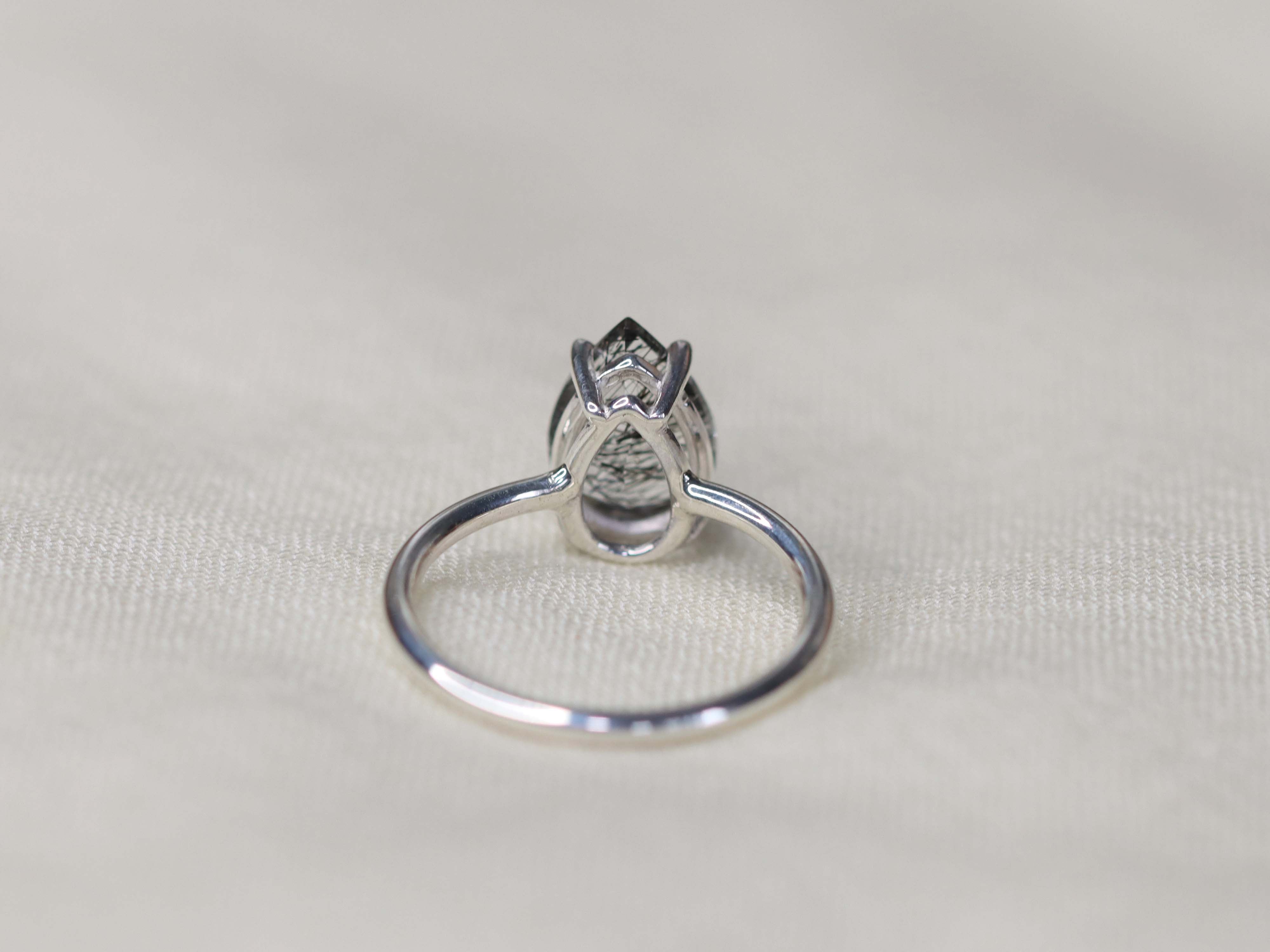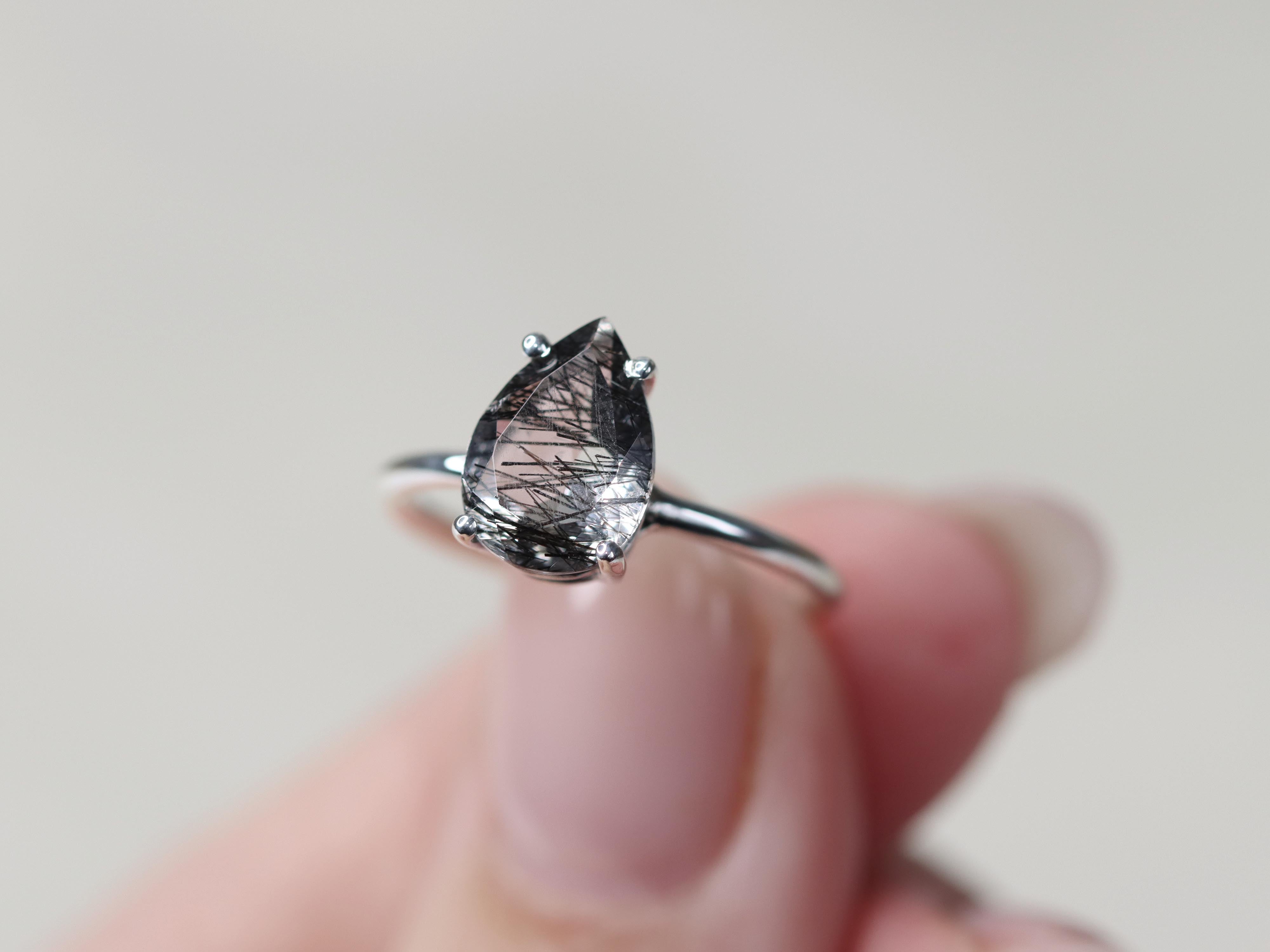 Tourmalinated Quartz Solitaire Ring - 10x7 Pear
