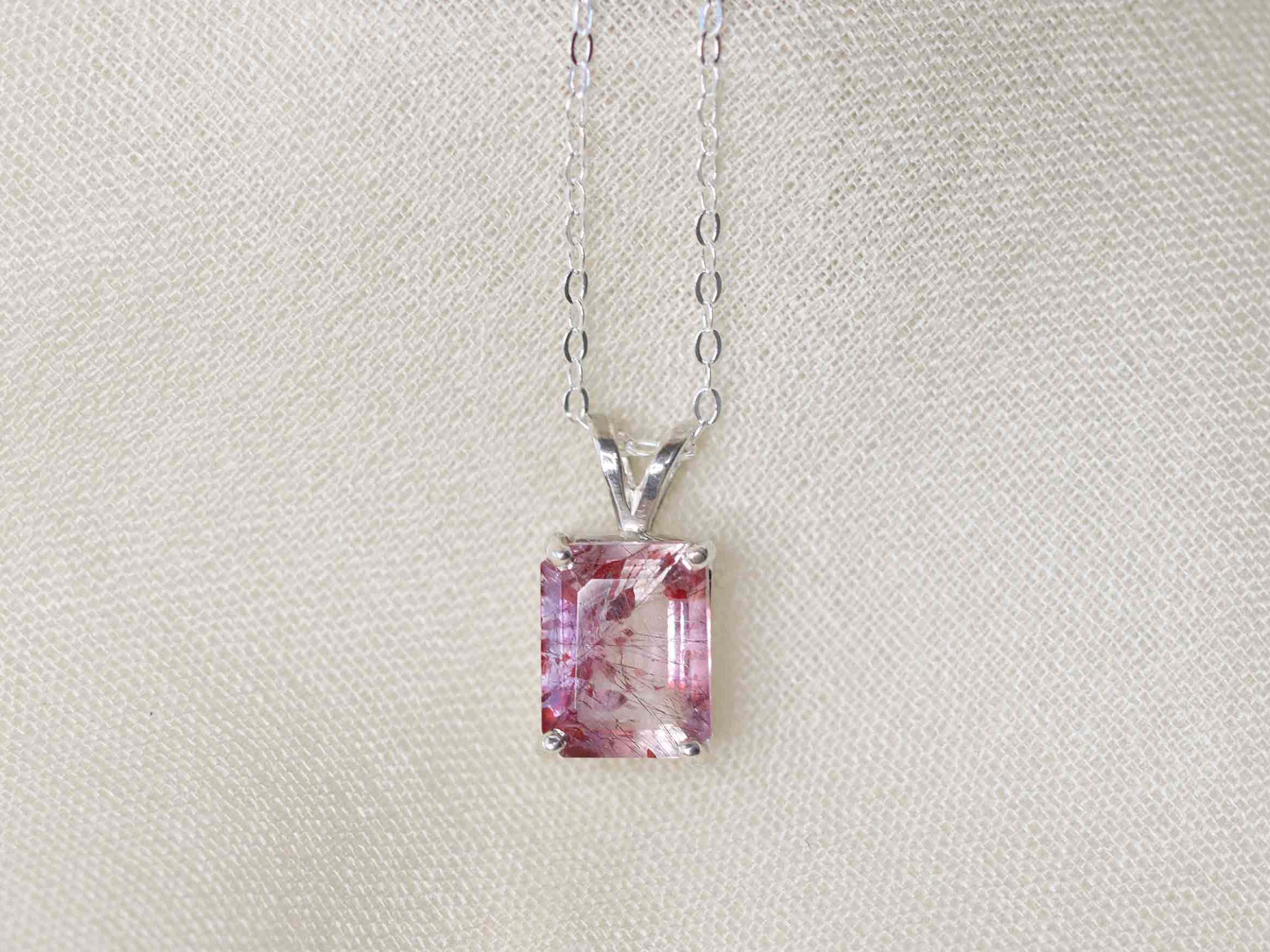 Fire Quartz Pendant Necklace - 9x7 Emerald