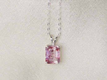 - 9mm x 7mm faceted emerald cut strawberry quartz in a prong setting